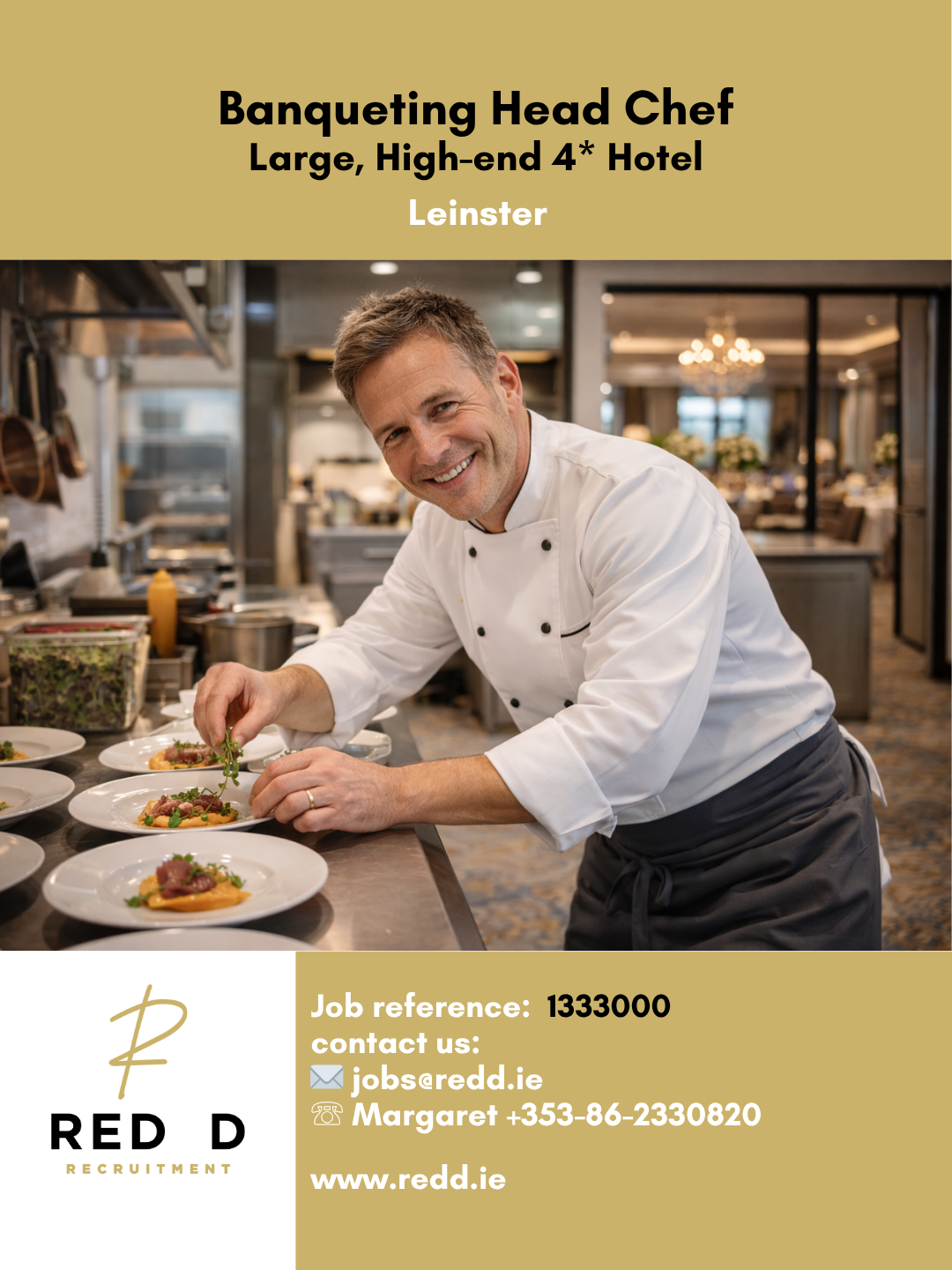Red D are recruiting a Banqueting Head Chef for a large, high-end four star hotel in Leinster. This is a senior Banqueting Head Chef role in a busy, well-established hotel...